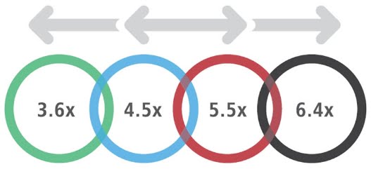 Magnifications from 3.0x – 3.8x
